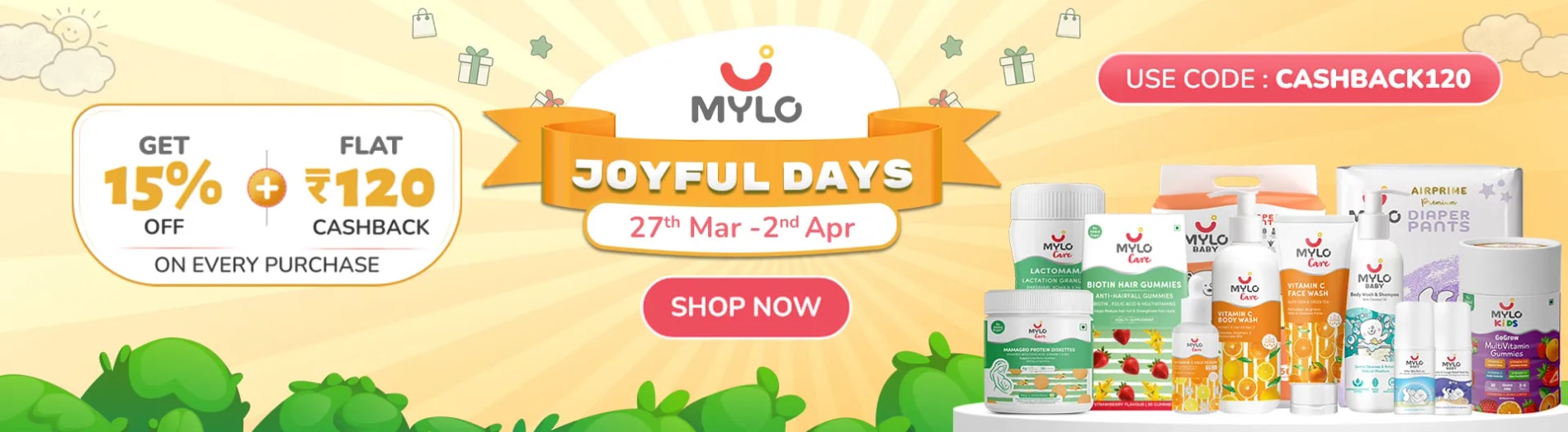 Mylo Baby Diaper Pants Jumbo M Size Pack of 76x2